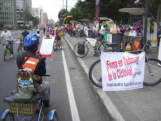 We're demanding that the Ciclovia of the Seventh be preserved. We also want to be certain that after Transmilenio is operating on Seventh Ave. the Ciclovia will still be there, even though there will be one less lane for cars.